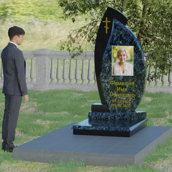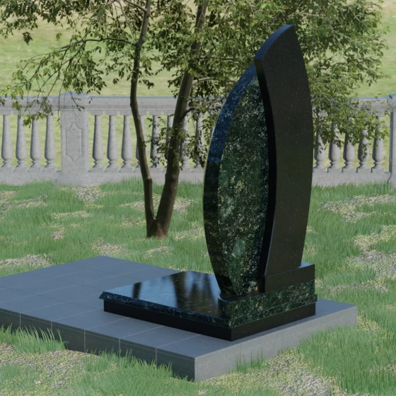Геометрия модели выстроена на сочетании двух различных пород камня, что позволяет добиться уникальной глубины восприятия. Мы предлагаем этот проект в 8 цветовых вариациях, используя лучшие сорта природного материала: величественный гранит амфиболит, изысканный Балтик грин, мерцающий Блю Перл, классический Габбро-диабаз, насыщенный Дымовский, яркий Лезниковский, светлый Мансуровский или белоснежный мрамор Тассо. Такое разнообразие палитры — это не просто эстетический выбор, а возможность отразить уникальный характер и темперамент покойного, подобрав камень, который будет резонировать с его жизненным путем.