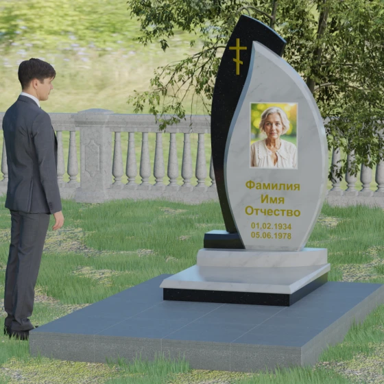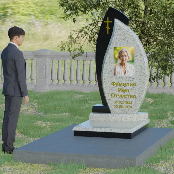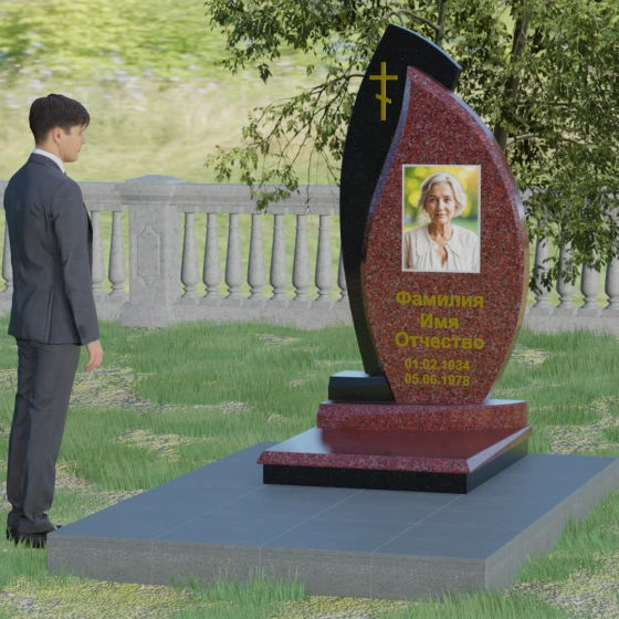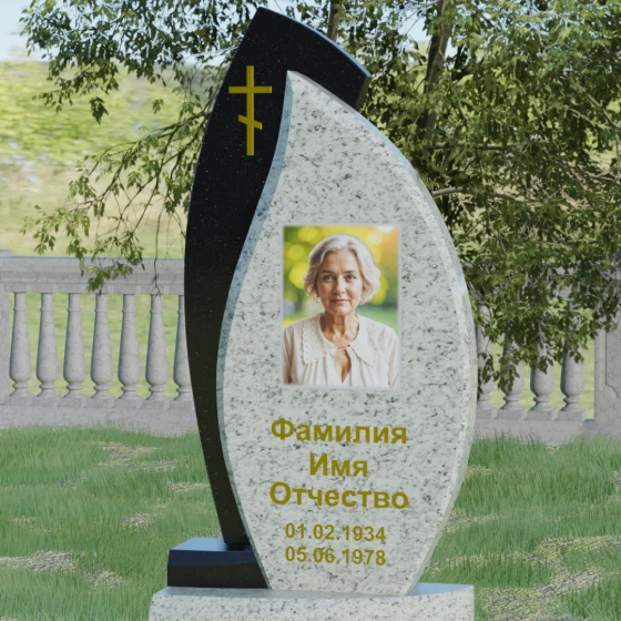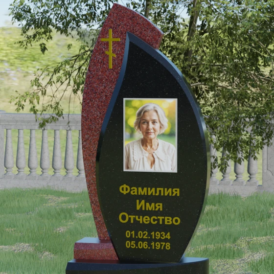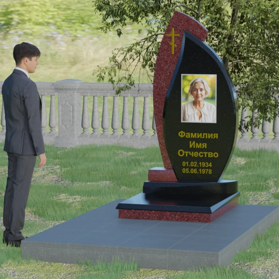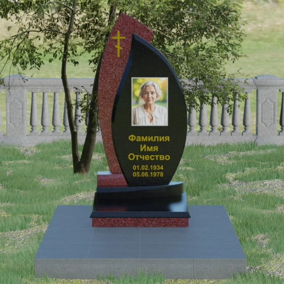 Кому подойдет: Данная модель является универсальным и в то же время глубоко индивидуальным решением. Благодаря мягким изгибам центральной части, она идеально подходит для оформления женских захоронений, воплощая нежность и материнскую любовь. В то же время строгая внешняя рама и возможность исполнения в темных, маскулинных тонах (например, в черном Габбро или зеленом граните Балтик грин) делают этот гранитный монумент достойным выбором для мужчины — отца, мужа или брата. Это памятник для тех, кто ценит современный стиль, надежность и хочет выделить место памяти среди типовых решений за счет уникальной формы и премиального сочетания материалов.
