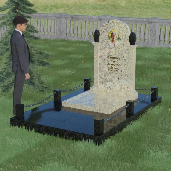 Форма купола или арки в мемориальной архитектуре традиционно символизирует небесный свод и переход души в лучший мир. Это образ защиты и вечного крова, который мы дарим близкому человеку в его последнем пристанище. Колонны, обрамляющие памятник, олицетворяют духовную опору и стойкость характера, а также преемственность поколений. Каждая деталь здесь — от четких линий основания до изящных верхушек — говорит о нерушимой связи между прошлым и настоящим, о покое, который наконец обрела душа, и о той защите, которую память живых обеспечивает ушедшим.