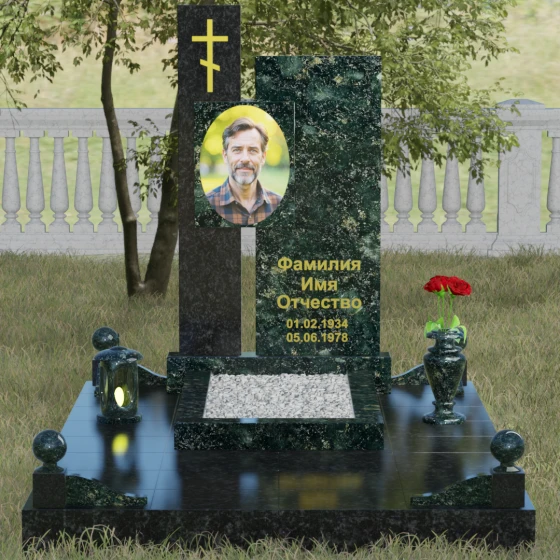 Для создания по-настоящему персонального образа мы предлагаем исполнение данной модели в 8 эксклюзивных цветовых решениях. В зависимости от темперамента и жизненного пути близкого человека, вы можете выбрать классический гранит Габбро-диабаз, величественный и огненный гранит Лезниковский или глубокий, лесной гранит Балтик грин. Также доступны изысканный гранит амфиболит с его неповторимым рисунком, благородный гранит Дымовский, небесно-мерцающий гранит Блю Перл, белоснежный гранит Мансуровский или чистейший мрамор Тассо. Такое многообразие позволяет подобрать сочетание камней, которое наиболее точно отразит характер и душу усопшего, создавая уникальную симфонию цвета и камня.