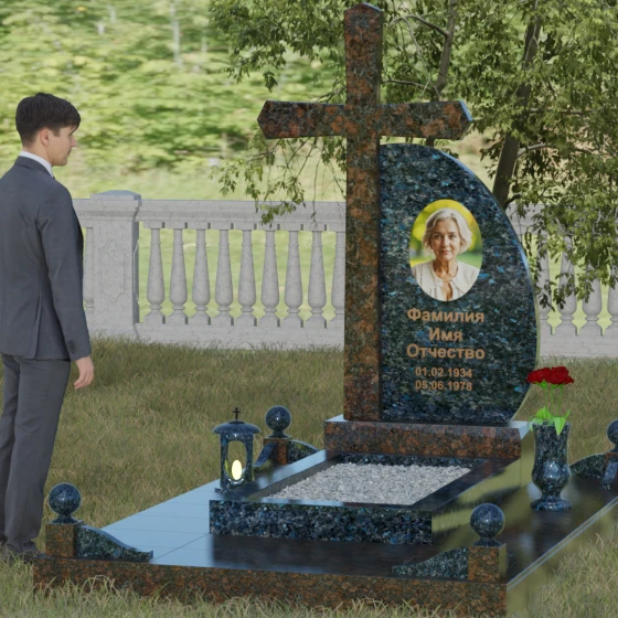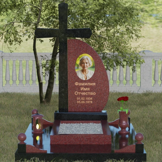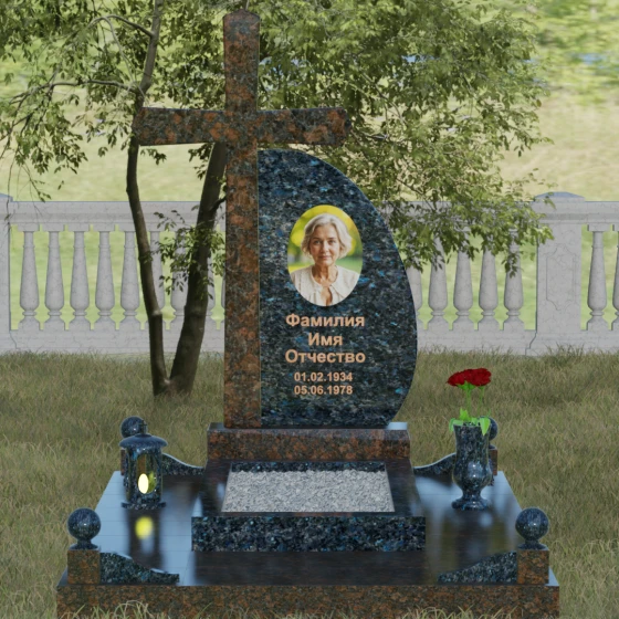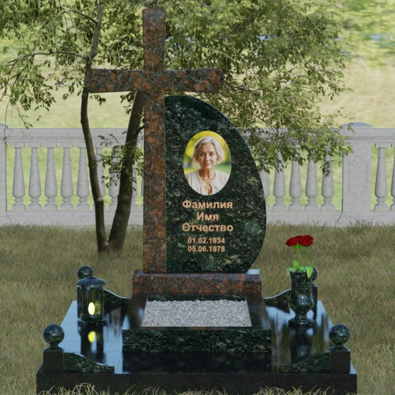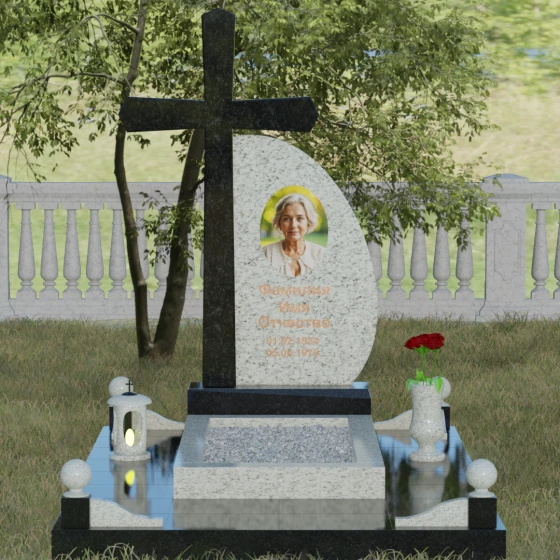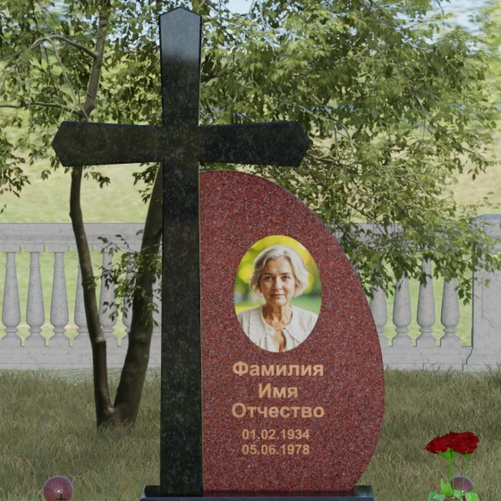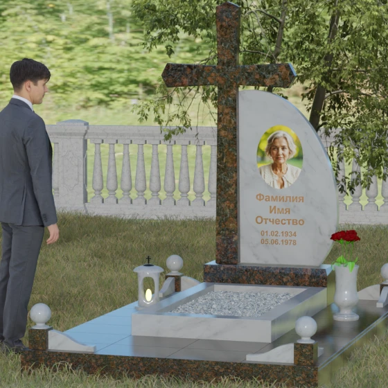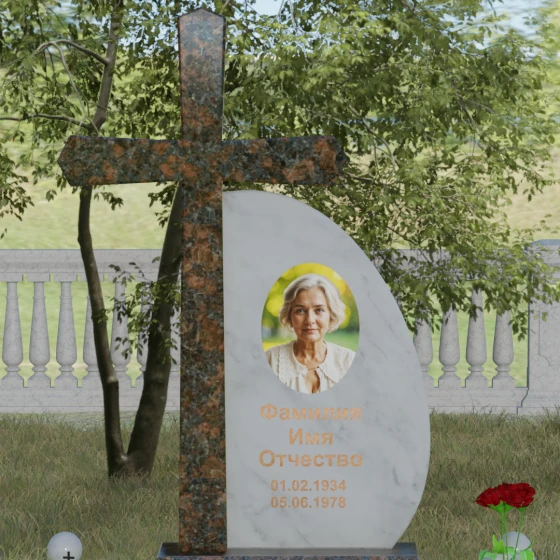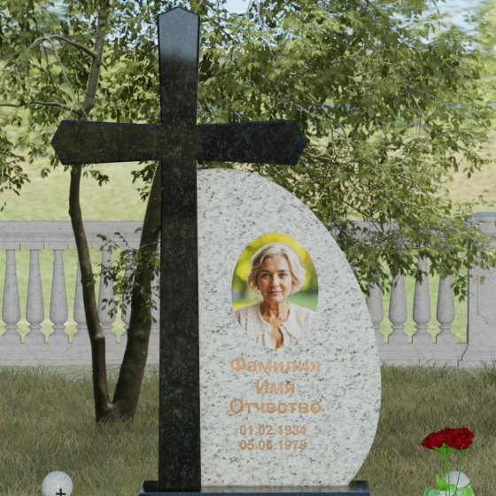 Кому подойдет: Данная модель является универсальной благодаря сочетанию религиозного символа и современной эстетики. В темном исполнении гранитный монумент идеально подходит для оформления мужского захоронения, подчеркивая статус и твердость характера. В более светлых тонах, таких как серый гранит или белый мрамор, композиция приобретает нежность и одухотворенность, что делает ее прекрасным выбором для памятника матери, жене или дочери. Это выбор тех, кто ценит архитектурную целостность и желает увековечить память близкого человека в форме, неподвластной времени.