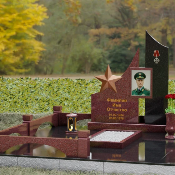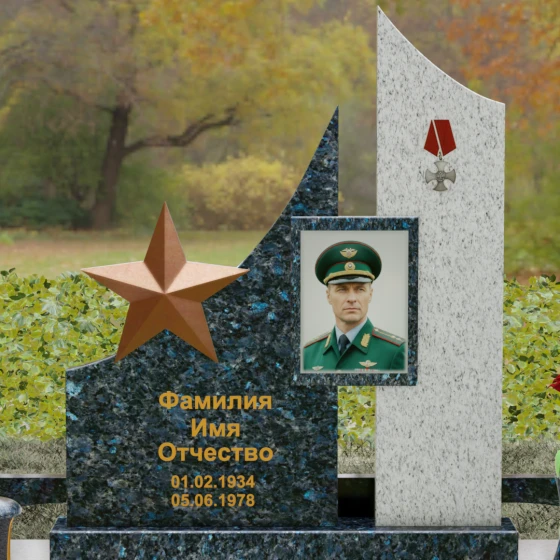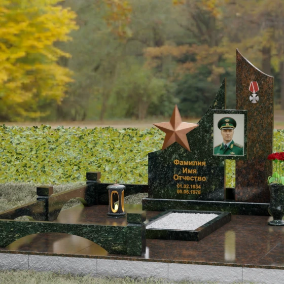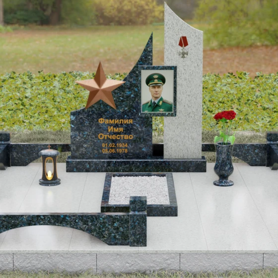 Создание достойного места упокоения — это сложная архитектурная задача, требующая баланса между монументальной строгостью и глубокой личной историей. Данное ритуальное изделие представляет собой сложную многокомпонентную композицию, призванную увековечить память о человеке, чья жизнь была неразрывно связана со служением, честью и доблестью. В каждой линии этого ансамбля читается преемственность поколений и непоколебимость духа, а использование благородных пород камня гарантирует сохранность мемориала на многие столетия.