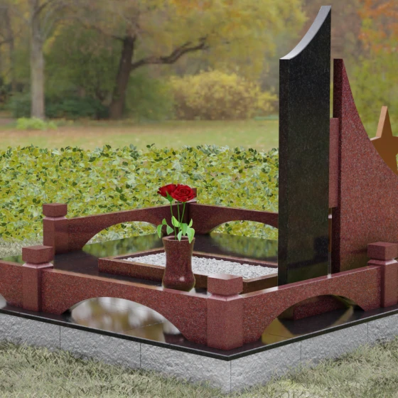 Форма данного ансамбля наполнена глубокими метафорами. Разновысотные элементы символизируют разные этапы жизненного пути, а восходящие линии стелы — стремление души к свету и вечному покою. Пятиконечная звезда и боевая награда являются не просто знаками отличия, а символами защиты, верности долгу и несгибаемой воли. Закрытая структура основания и наличие каменного ограждения (цоколя) создают ощущение приватности и защищенности, превращая место захоронения в священный островок тишины и памяти, где время словно замедляет свой бег.