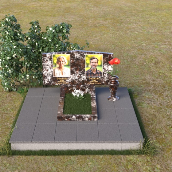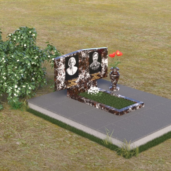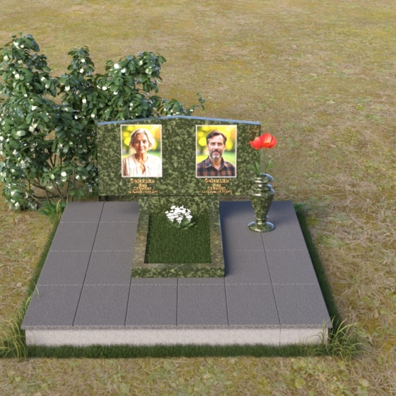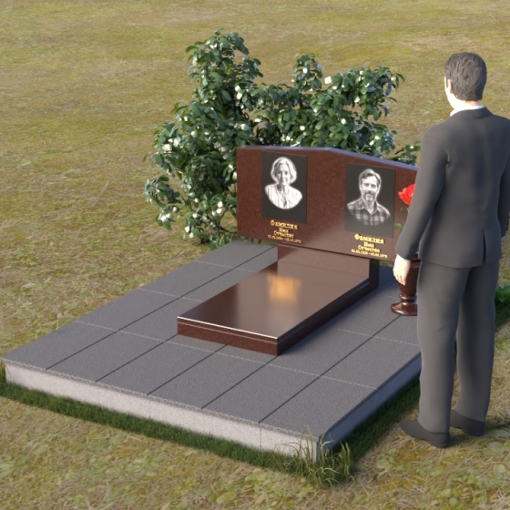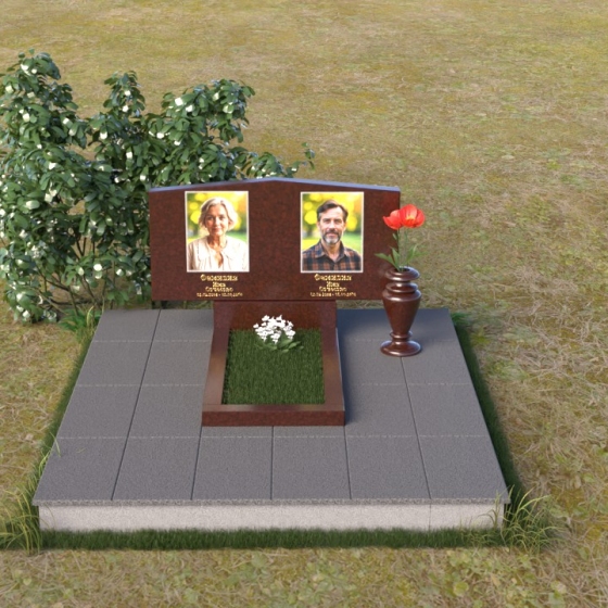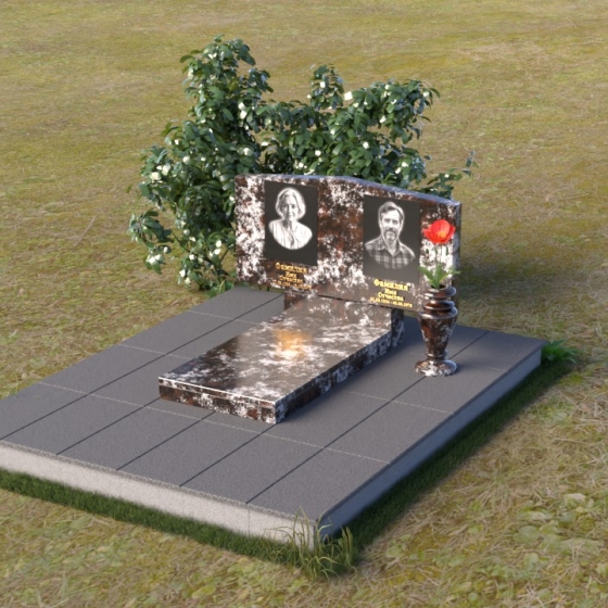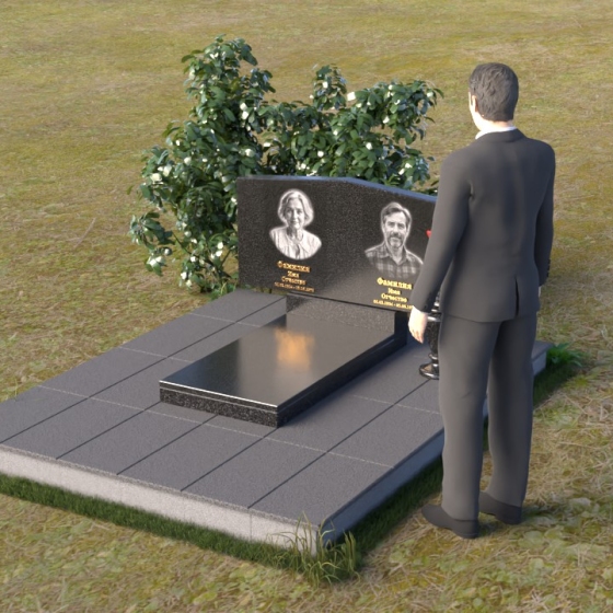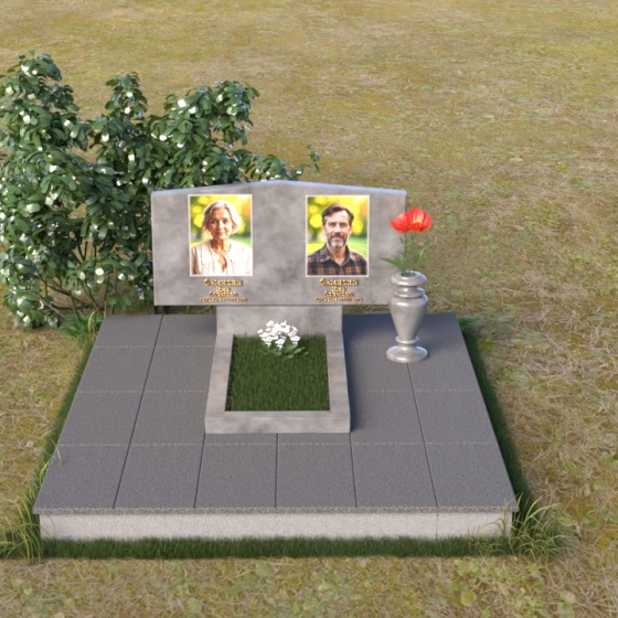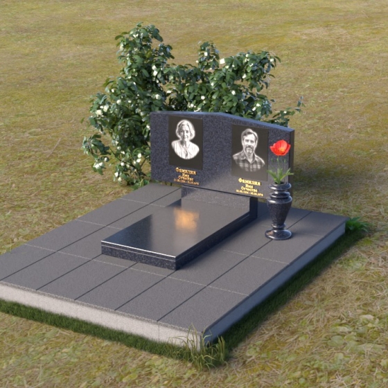 Форма этого памятника символизирует покой и защиту. Прямые линии и четкие грани говорят о стабильности и надежности, а скошенные углы смягчают строгость и добавляют нотку современности. Общая композиция создает ощущение умиротворения и вечности, напоминая о том, что память о близких будет жить в наших сердцах всегда.