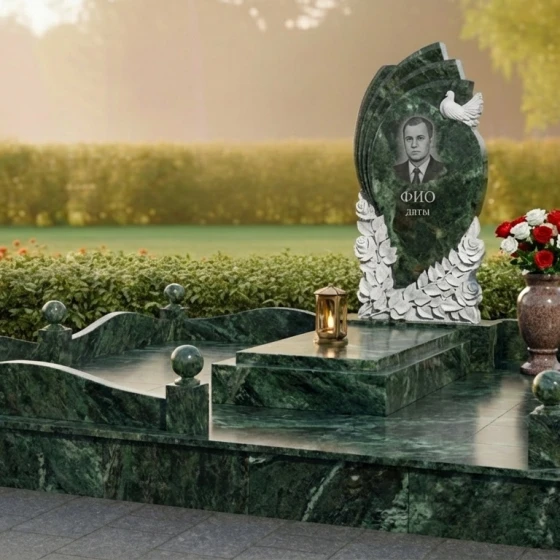 Форма стелы, с ее плавными изгибами и устремленностью ввысь, символизирует бесконечность души, ее переход в мир иной и вечный покой. Резные элементы – розы и голубь – несут глубокий сакральный смысл. Розы, с их нежными лепестками, традиционно ассоциируются с любовью, красотой и скоротечностью жизни, а голубь – с миром, чистотой и светлой душой усопшего. Общая композиция ритуального изделия призвана дарить утешение, напоминая о том, что любовь и память живут вечно, а ушедший человек обрел покой и умиротворение. Это надежный щит для памяти, оберегающий светлые воспоминания.