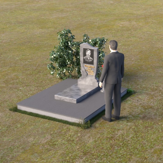 Плавные линии и скругленные формы памятника символизируют покой и умиротворение, а его строгая геометрия – надежность и вечность. Волнообразный силуэт верхней части стелы напоминает о течении времени, но в то же время говорит о непрерывности жизни и памяти. Зеркальная полировка поверхности камня отражает окружающий мир, напоминая о том, что ушедший человек навсегда останется частью нашей жизни и памяти. Форма основания символизирует прочную основу, защиту и незыблемость памяти об усопшем.