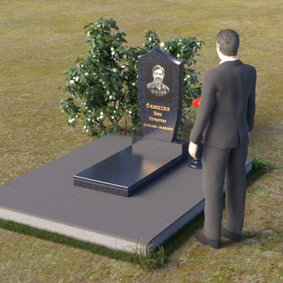 Оформление: Для данной формы стелы идеально подойдет гравировка портрета усопшего в верхней части. Имя, отчество, фамилию и даты жизни можно разместить ниже портрета, используя строгий, лаконичный шрифт. Золотое напыление букв создаст элегантный контраст с черным гранитом и подчеркнет важность информации.