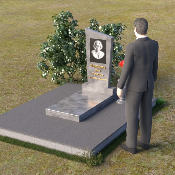 Геометрия модели продумана до мелочей. От основания, служащего надежным фундаментом, до изящно скошенного верха стелы – каждый элемент работает на создание целостного и гармоничного образа. Массивное основание плавно переходит в горизонтальную плиту, которая является своеобразным пьедесталом для вертикальной стелы. Скошенный верх стелы не только придает ей оригинальный вид, но и создает ощущение легкости и устремленности ввысь. Все элементы композиции объединены общей идеей – создать прочное и долговечное сооружение, которое будет достойным памятником ушедшему человеку.