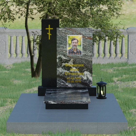 Кому подойдет: Благодаря своей строгой геометрии и асимметричному дизайну, этот памятник является универсальным и благородным решением. Лаконичность форм и отсутствие излишнего декора делают его идеальным для оформления мужского захоронения (отцу, мужу или брату), подчеркивая твердость и достоинство. В то же время, при использовании цветного гранита или светлого мрамора, модель прекрасно подойдет для женского или семейного мемориала. Это выбор тех, кто ищет баланс между традиционными символами веры и современной европейской архитектурой в ритуальном искусстве.