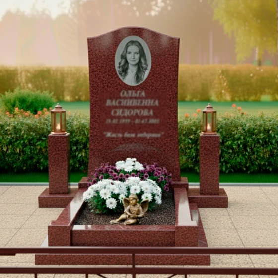 Представленный мемориальный комплекс выполнен из высококачественного гранита — материала, который по праву считается эталоном прочности и долговечности. Гранит обладает уникальной плотностью, что обеспечивает его исключительную устойчивость к любым погодным условиям, будь то суровые морозы, палящее солнце или проливные дожди. Его низкая пористость гарантирует, что камень не будет впитывать влагу и разрушаться со временем, сохраняя свой первозданный вид на протяжении веков. Зеркальная полировка поверхности не только придает граниту благородный блеск, но и защищает его от внешних воздействий, делая уход за памятником минимальным. Этот материал не требует особого ухода, достаточно периодически протирать его влажной тканью, чтобы сохранить его безупречный вид. Выбирая гранит, вы выбираете вечность, гарантируя, что память о близком человеке будет увековечена в камне, который не подвластен времени.